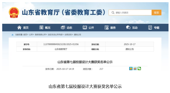 近日,由山东省教育厅、山东省工业和信息化厅、山东省市场监督管理局联合主办的山东省第七届校服设计大赛评选结果正式公布。学院服装艺术系宋俏颖、杜海宁等7位教师的四组作品荣获三等奖。